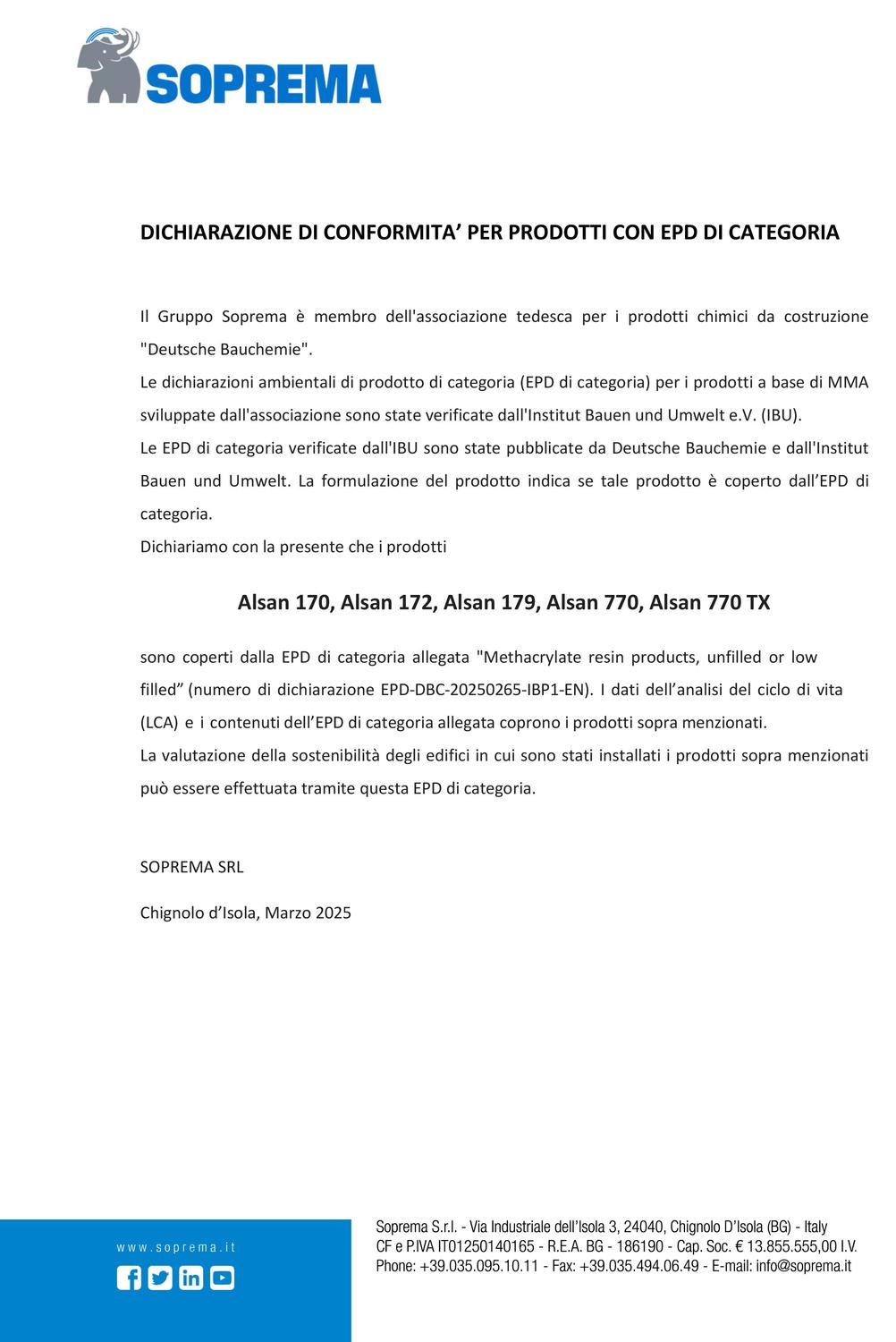 Certificazione EPD Alsan 170, Alsan 172, Alsan 179, Alsan 770, Alsan 770 TX