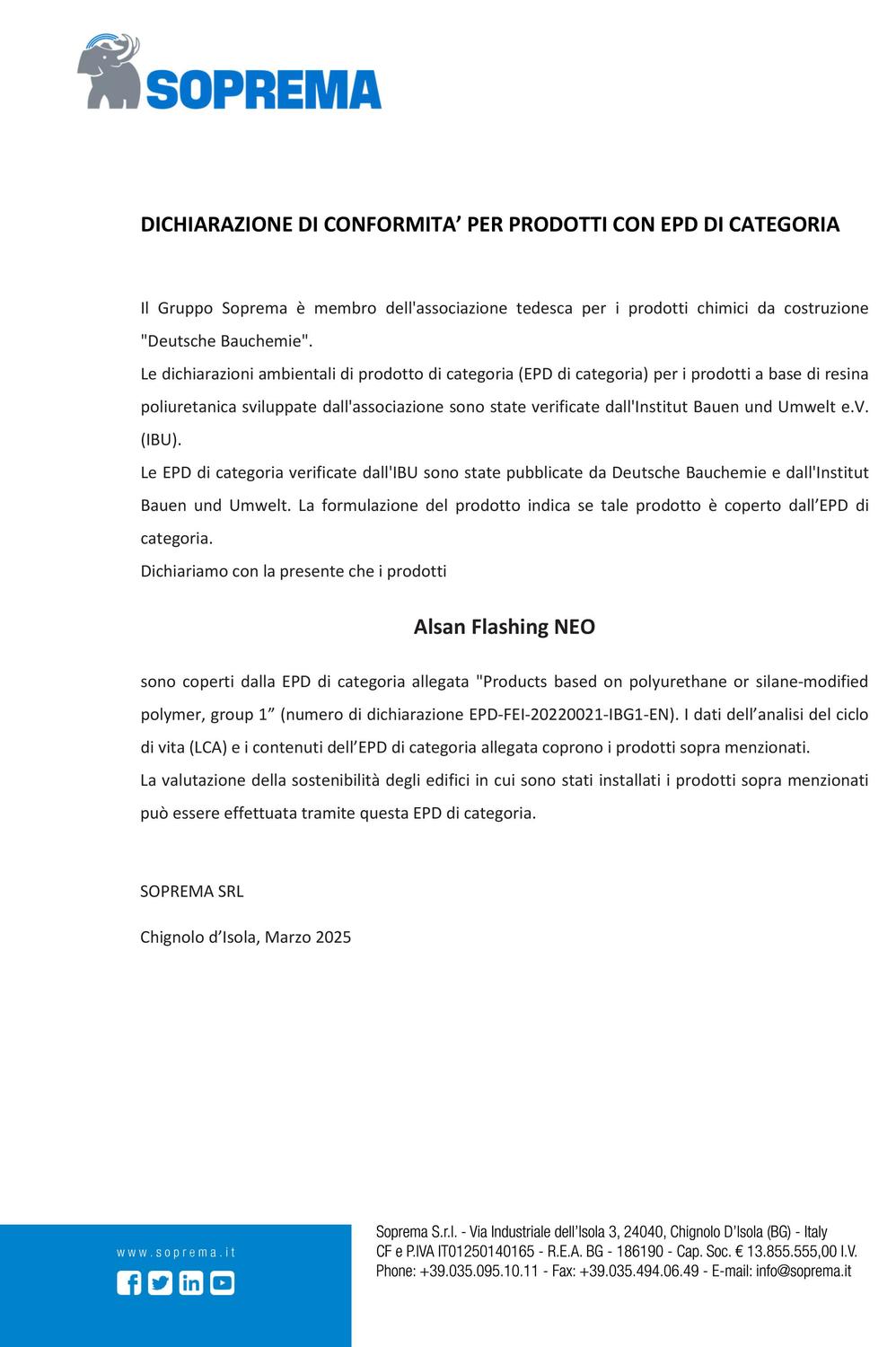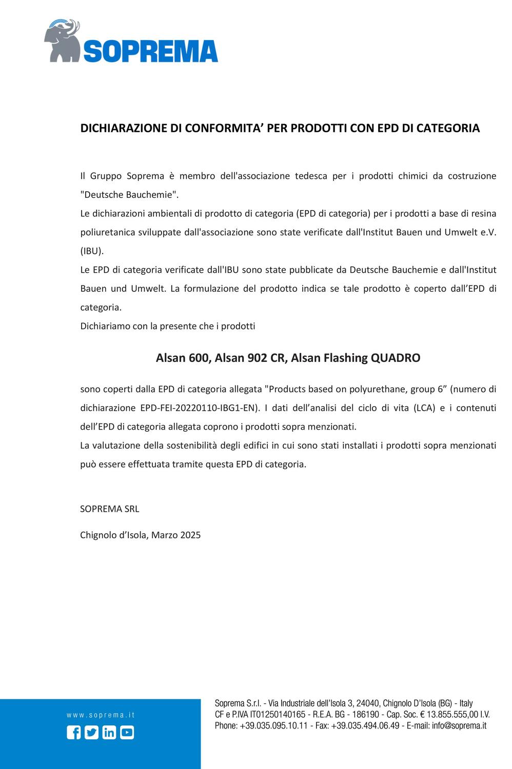 Certificazione EPD Alsan 600, Alsan 902 CR, Alsan Flashing QUADRO