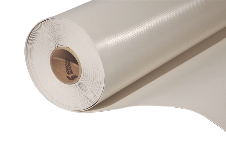Membrana sintetica realizzata in poliolefina modificata TPO ottenuta per co-estrusione con inserimento di un velo di vetro come stabilizzatore dimensionale.