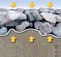 - Un elevato allungamento e una resistenza alla perforazione dinamica evitano il deterioramento durante la posa di pietrame.