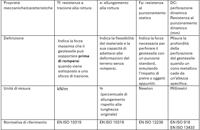 I parametri meccanici più importanti per un geotessile di protezione sono due che abbiamo già menzionato in precedenza: Dc e Fp. Inoltre, è richiesta anche la proprietà meccanica d.