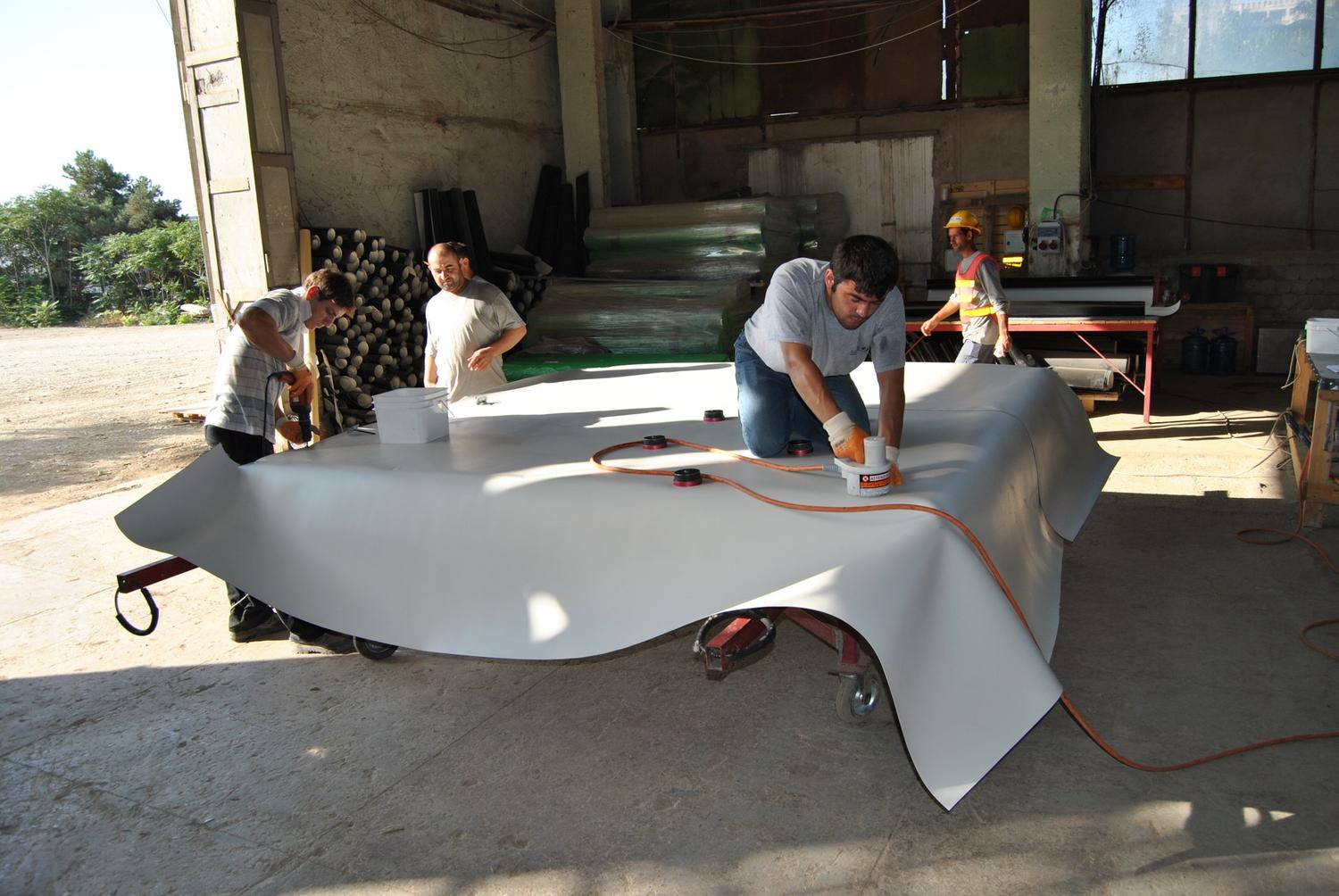 Questa soluzione ha rappresentato una grande innovazione: un sistema prefabbricato montato in opera, capace di assicurare continuità all’impermeabilizzazione nonostante la geometria complessa. La prefabbricazione ha inoltre consentito di lavorare in continuo, ridurre al minimo gli sfridi e mantenere elevata la qualità dei dettagli.